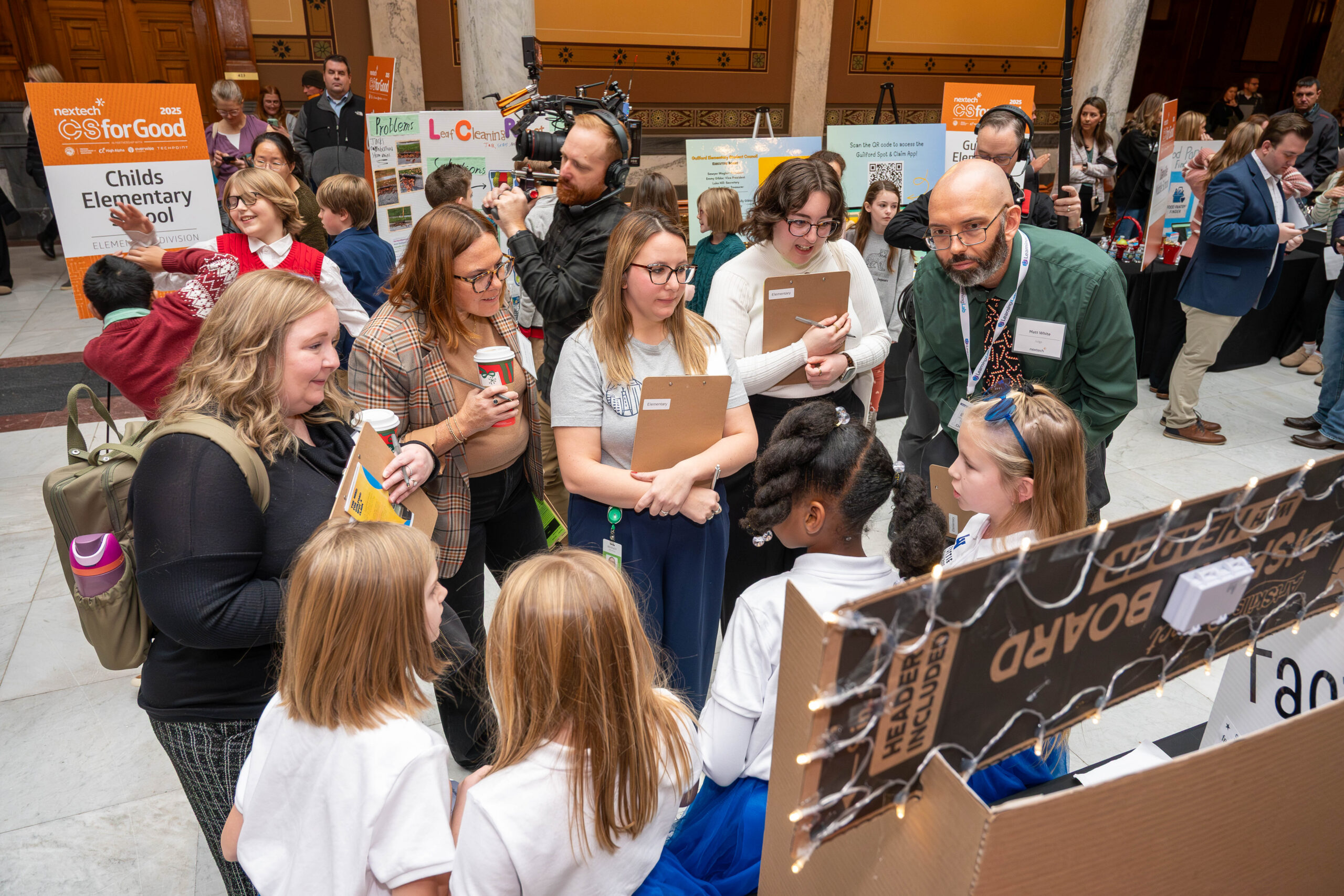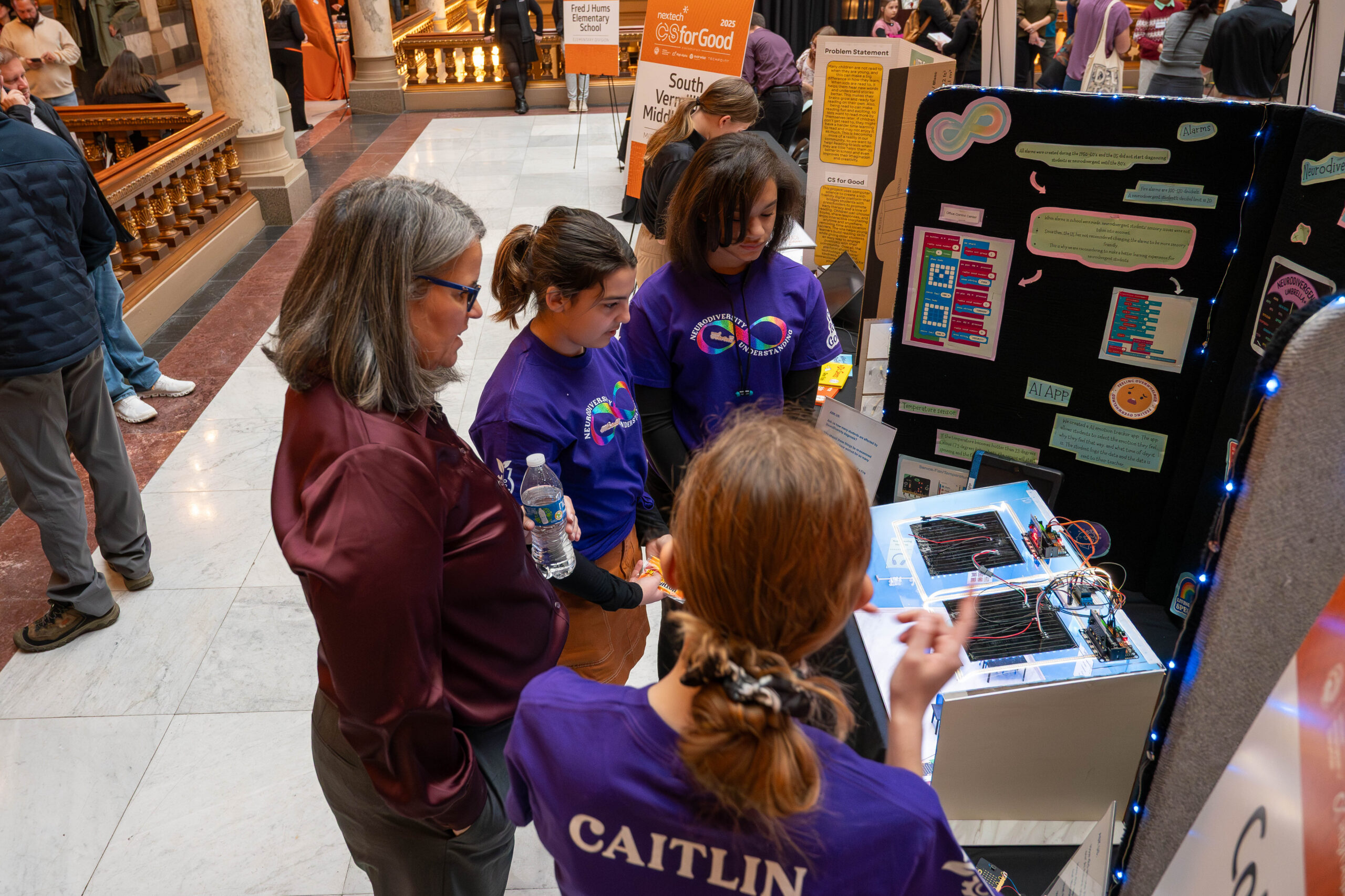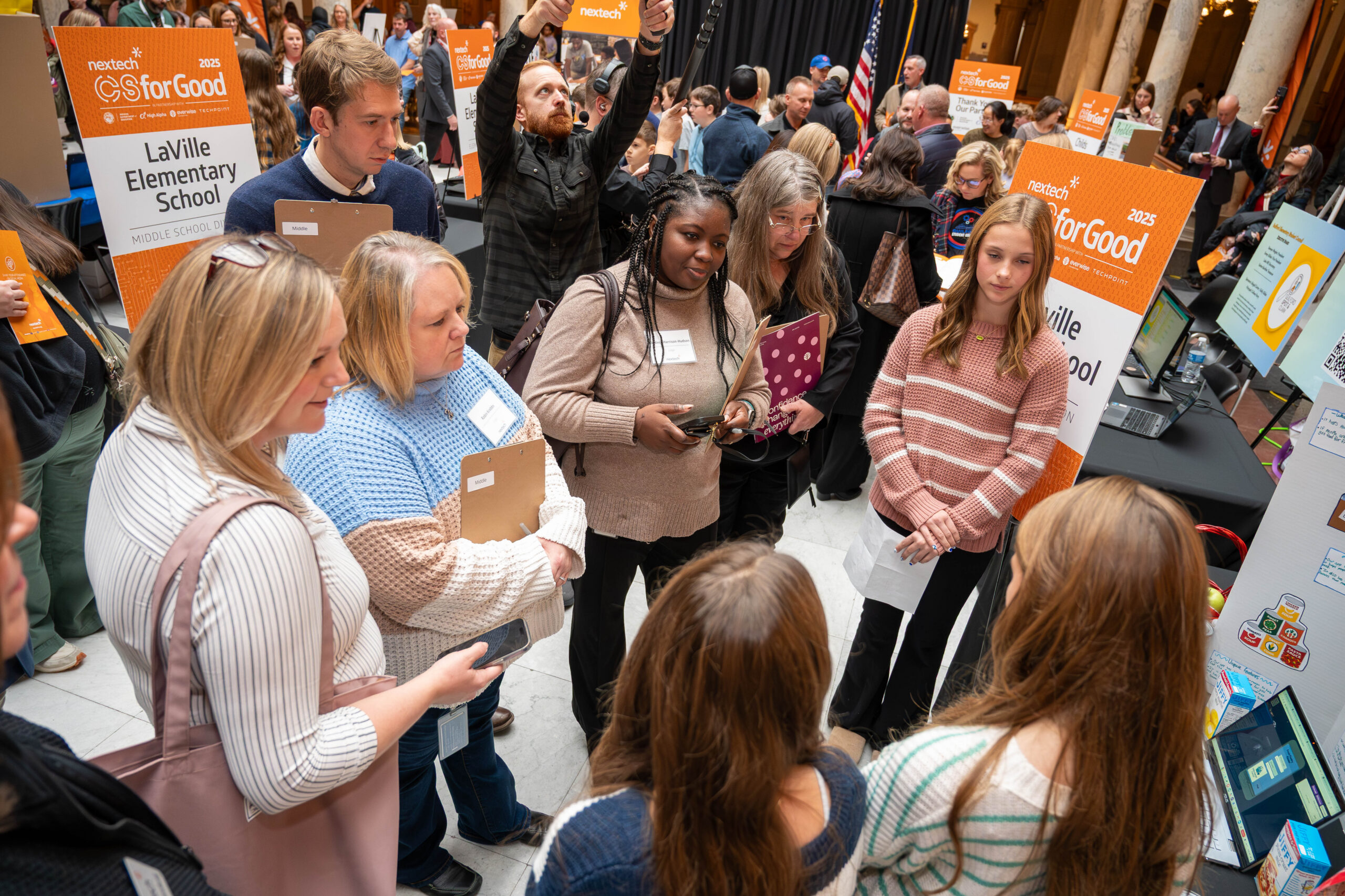 Finalist teams are invited to the Nextech CSforGood Celebration at the Indiana Statehouse, where they showcase their work to judges, legislators, industry leaders, and members of the tech community.